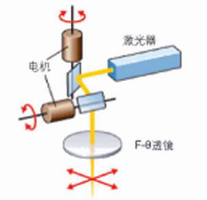 從激光器中輸出的光束,由安裝在高速精密電機(jī)上的兩個(gè)反射鏡控制,以實(shí)現(xiàn)光束的運(yùn)動(dòng)打標(biāo)。每個(gè)反射鏡都沿著單一的軸線運(yùn)動(dòng)。電機(jī)的運(yùn)動(dòng)速度非???,并且慣性非常小,從而能夠?qū)崿F(xiàn)對(duì)目標(biāo)物體的快速打標(biāo)。經(jīng)過反射鏡引導(dǎo)的光束利用F-θ透鏡聚焦,焦點(diǎn)位于被標(biāo)記的平面上。當(dāng)該聚焦光束與被標(biāo)記物體相互作用時(shí),物體就被“打上標(biāo)記”了。除了被打標(biāo)的位置,物體的其他表面仍然保持不變。
